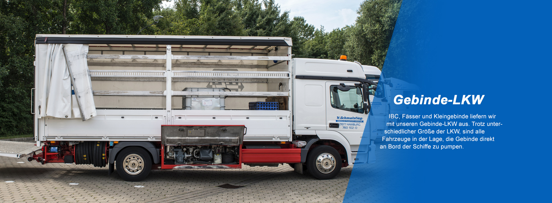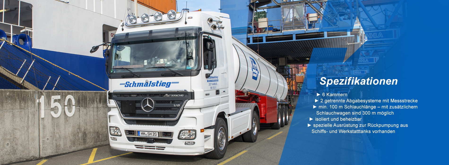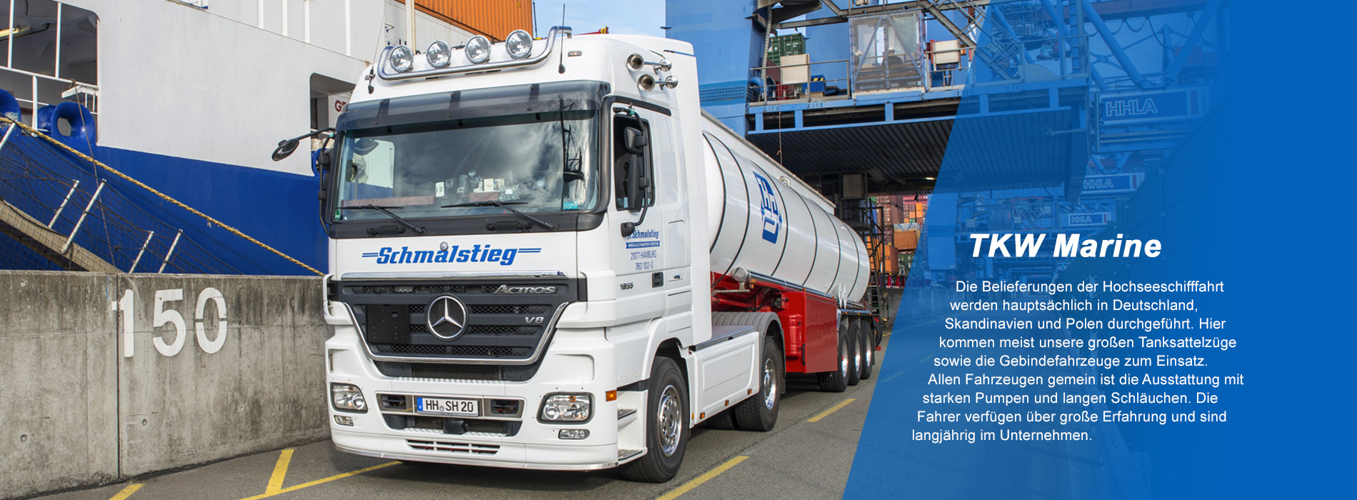Für die Belieferung der internationalen Hochseeschifffahrt mit Schmierstoffen landseitig verfügen wir heute über eine Flotte unterschiedlicher Fahrzeuge und zusätzliches Equipment, um die Lieferungen auch an ungünstigen Kai-Anlagen sicherstellen zu können.