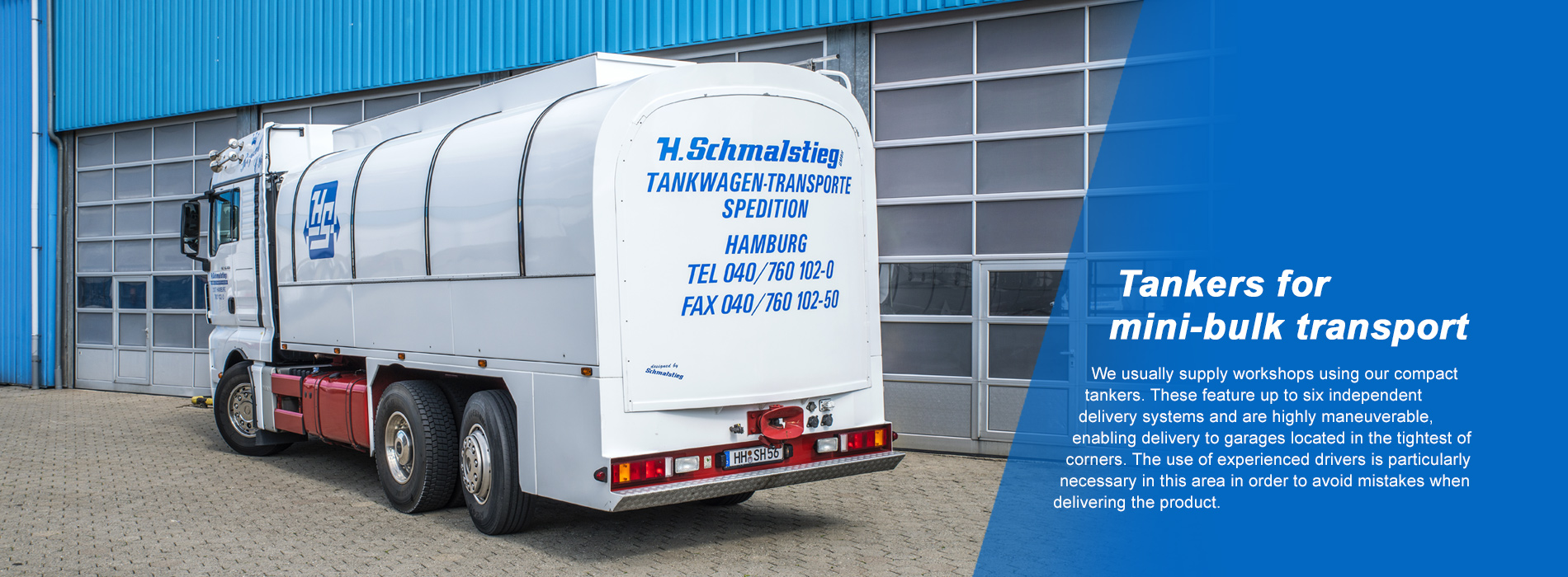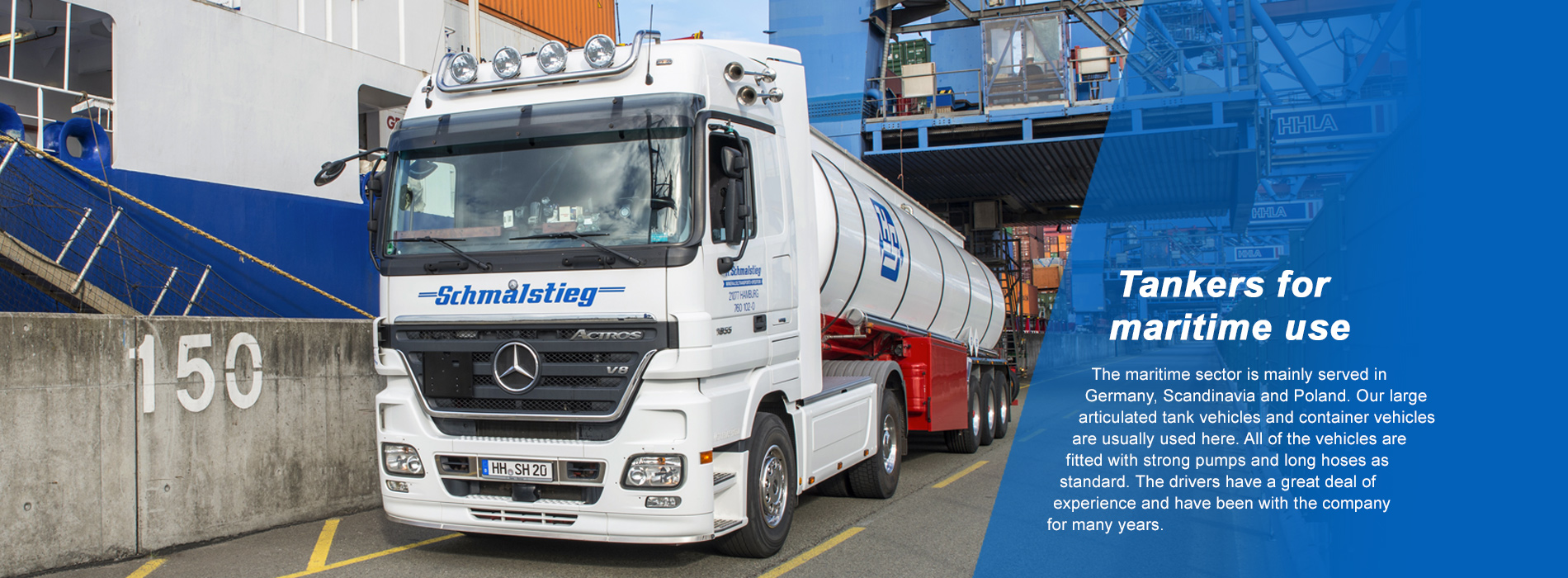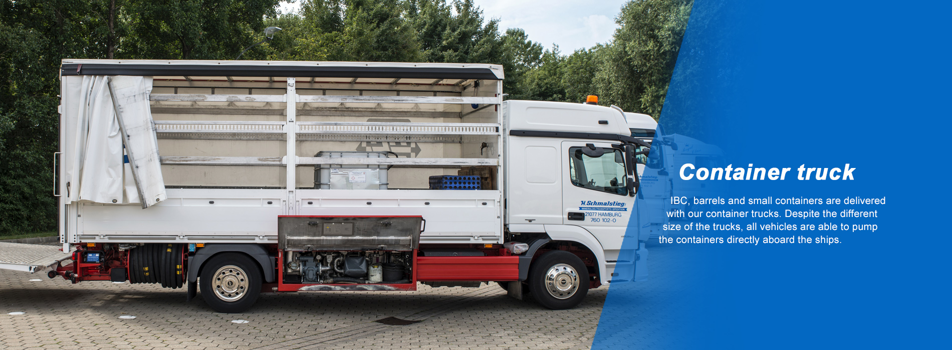 For the purpose of supplying international maritime transporters with lubricants from land, we currently have a fleet comprising a variety of vehicles and additional equipment to enable deliveries even to quays in difficult locations.