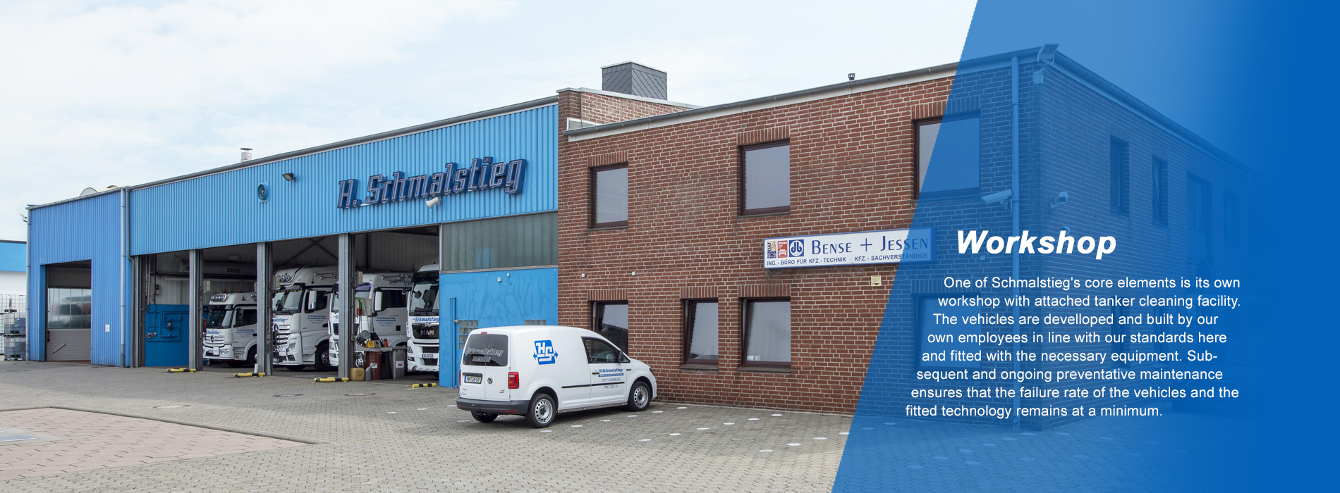 Our own workshop with adjacent tanker cleaning facility forms the heart of our business. The vehicles are built by us in line with our own needs here and fitted with the necessary equipment. Subsequent and ongoing preventative maintenance ensures that the failure rate of the vehicles and the fitted technology remains at a minimum.